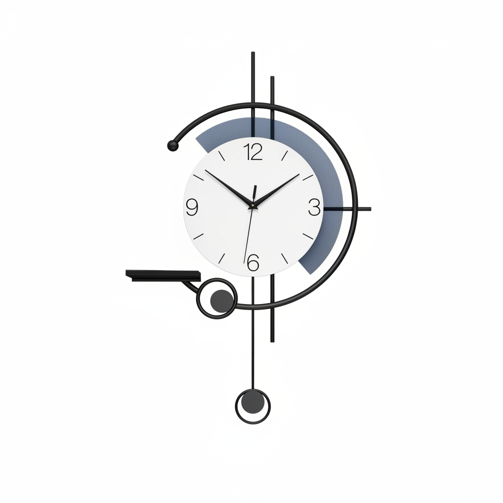 Minimalist Modern Wall Clock, Large Creativity Decorative Wall Clocks with Storage Table, Metal Frame + Wooden Dial, Wall Clock without Ticking Noises for Living Room, Bedroom, Office, Kitchen