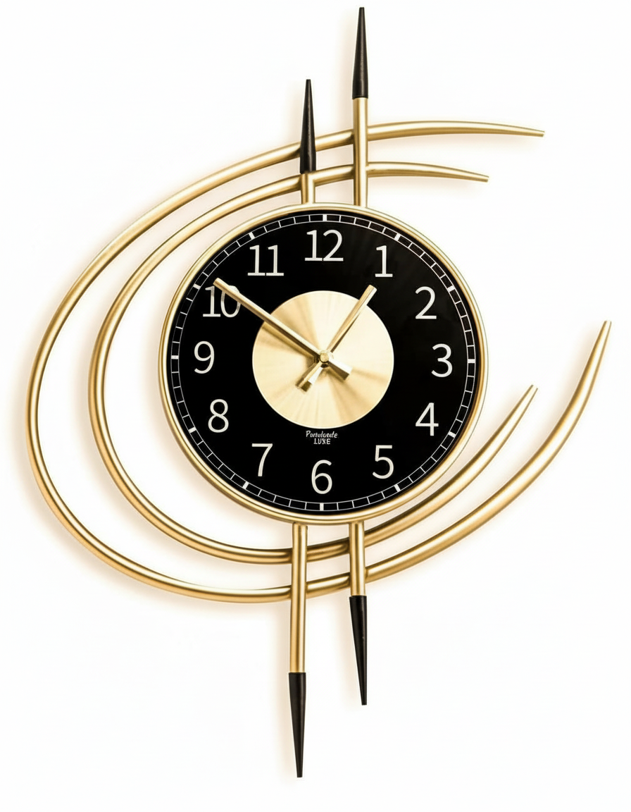 Wall Clock Large Modern 54 cm Wall Clock Living Room Clock Wall without Ticking Noises Wall Clocks Gold Black Silent Design Metal Living Room Clock Decorative