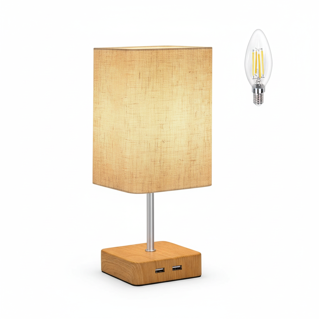 Canedo Table Lamp, 1-Bulb Table Lamp Made of Wood and Plastic in NaturalBlack, Lamp in Scandinavian Design with OnOff Switch on Cable and Light Effect, 1 x E27, Bulb Not Included