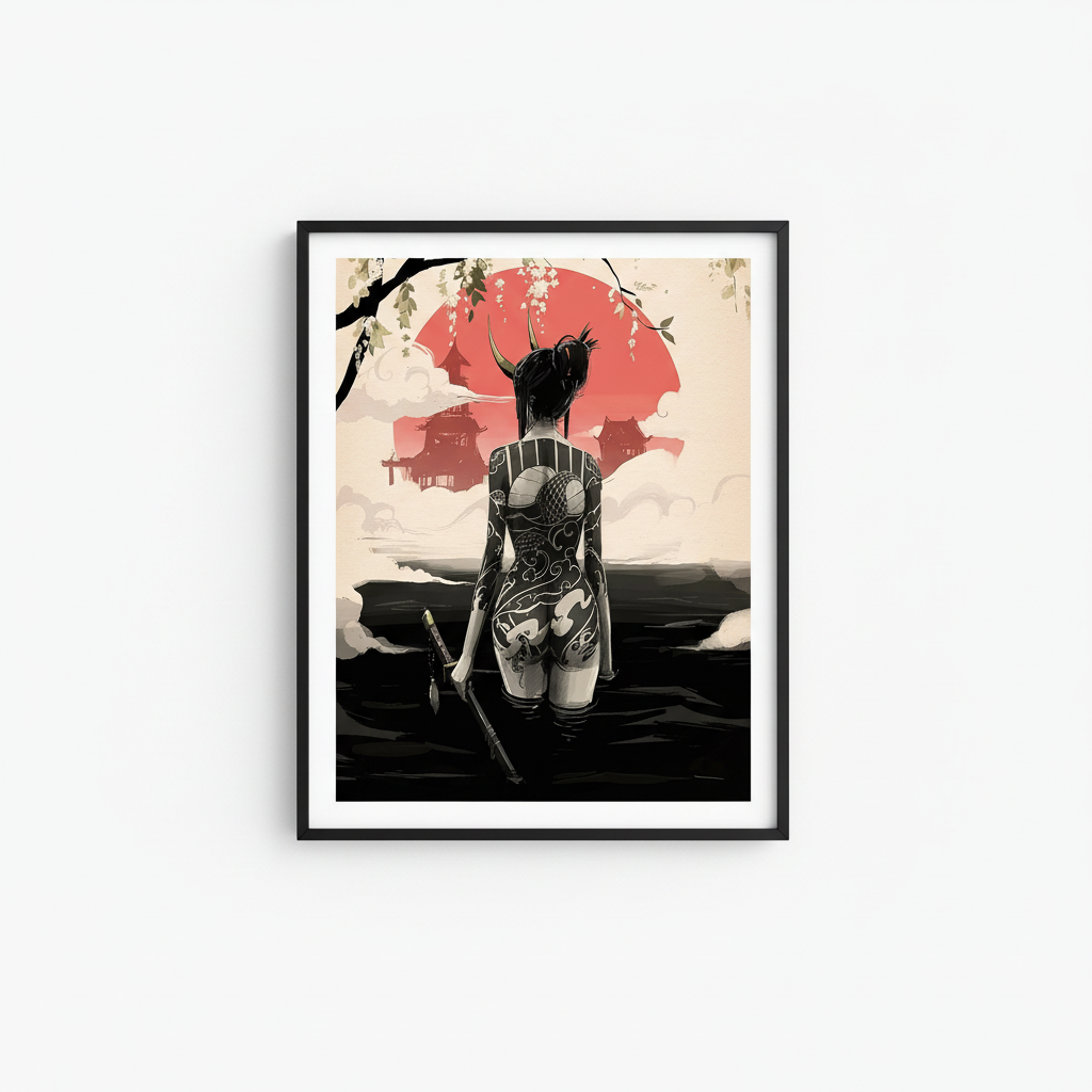 Japanese Woman Bushido Canvas Pictures, Japanese Samurai Poster Art Prints, Samurai Canvas Pictures for Living Room, Bedroom Decor, without Frame (40 x 60 cm)