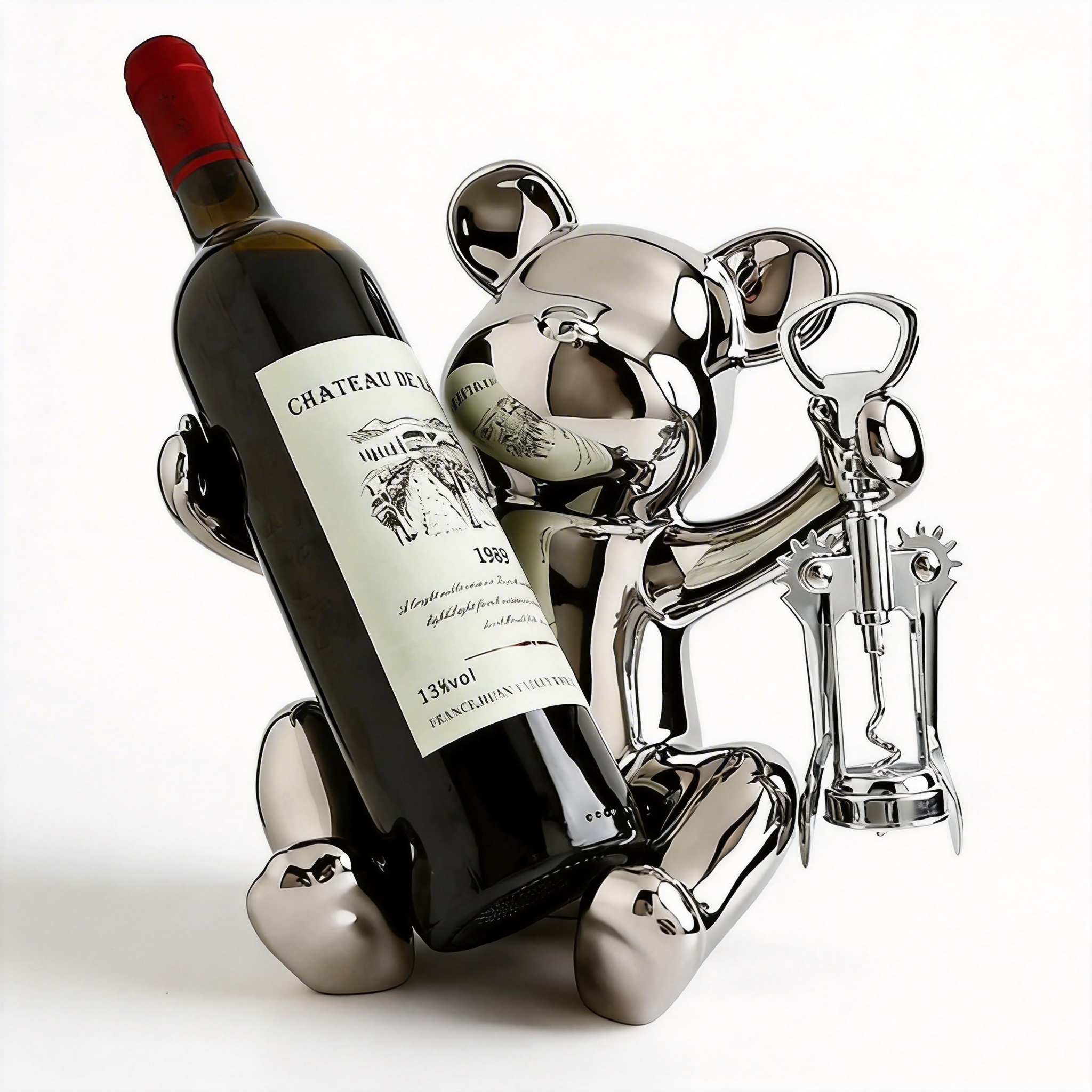 Verleihen Sie Ihrem Raum einen Hauch von Eleganz mit unserem metallenen Weinflaschenhalter in Bärenform – erhältlich in Gold oder Silber. Dieser stylische Halter hält Ihre Flasche sicher und ist die perfekte Mitteldekoration für Esstisch, Bartisch oder Theke.