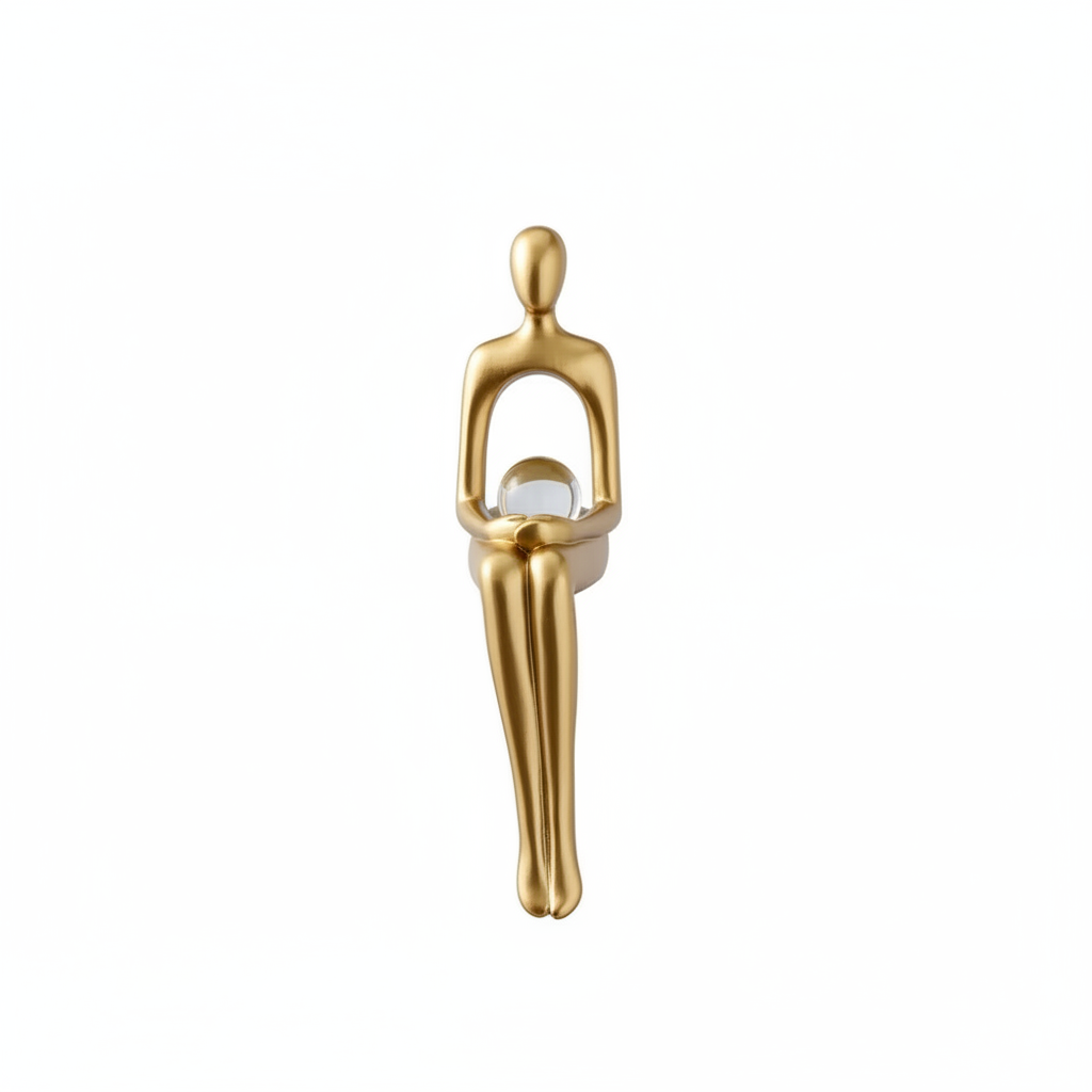 Be the first to review “Skandinavische Goldstatue – Abstrakte Regaldekofigur”